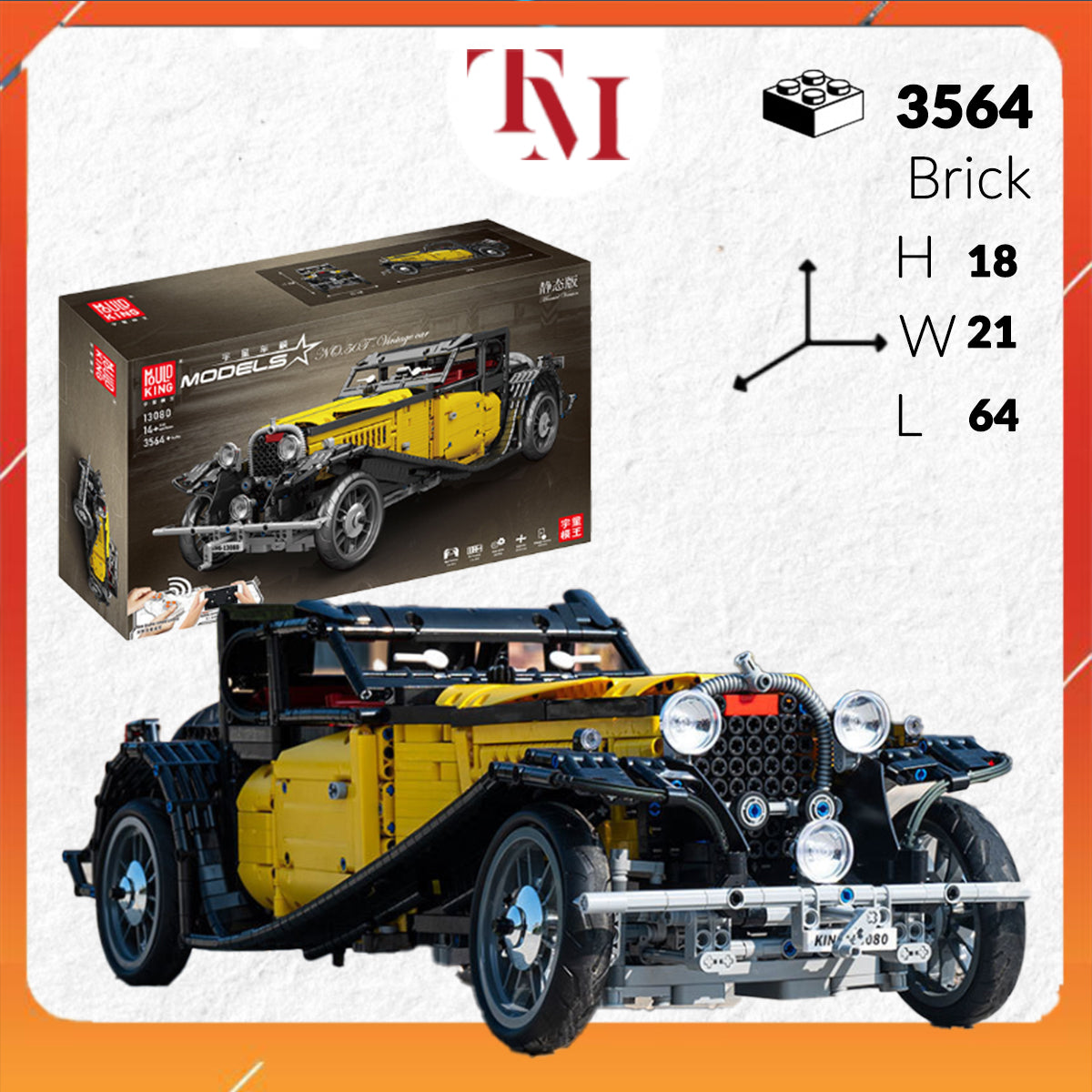 Mô Hình siêu xe Technic Mould King Bugatti Vintage 50T 1308 Tỉ lệ 1:8 3564 mảnh
